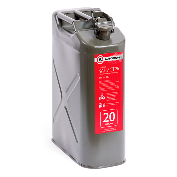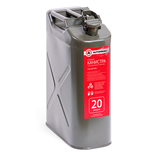 Канистра топливная 20л стальная AUTOPROFI KAN-200, вертикальная, антикоррозийное покрытие, горловина с зажимом.