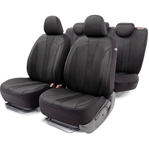 Универсальные чехлы на сиденья из полиэстера. Ткань хорошо пропускает воздух и отводит влагу, достаточно эластична, но при этом прочная и устойчива к растяжению.