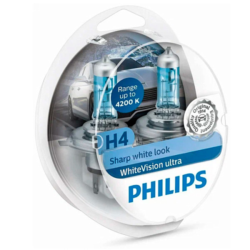 Лампа галогенная автомобильная H4+W5W Philips White Vision Ultra, комплект 2 шт: