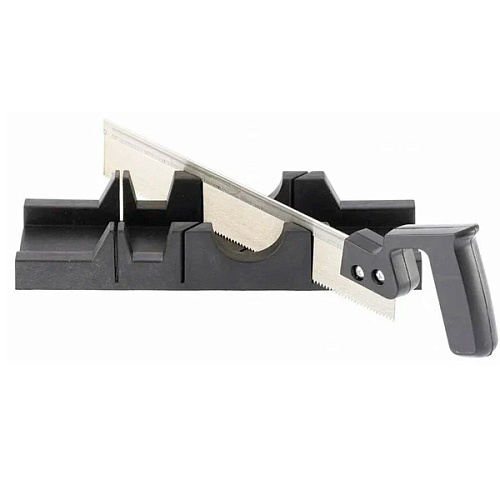 Стусло пластиковое и пила с полотном 300мм SPARTA 225305 применяется для резки плинтусов, вагонки, ламината шириной до 65 мм и толщиной до 40 мм, позволяет установить детали под углом 45° и 90°.