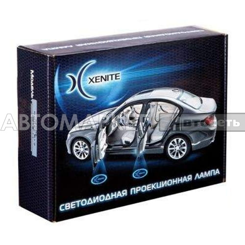 Комплект проекционных светодиодных ламп в виде логотипа имеет врезную конструкцию в дверь автомобиля.